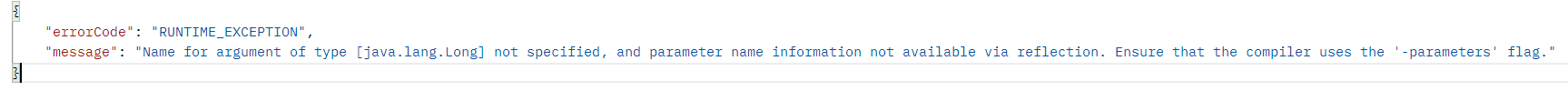 Request processing failed: java.lang.IllegalArgumentException: Name for argument of type [java.lang.String] not specified, and parameter name information not available via reflection. Ensure that the compiler uses the '-parameters' flag.] with root cause