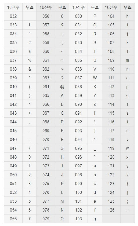 알파벳은 ASCII Code에 따라 고유의 숫자와 매칭된다.