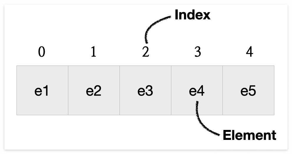 - 배열을 구성하는 각각의 값을 요소(element)라고 하며, 해당 요소의 위치를 인덱스(index)라고 한다