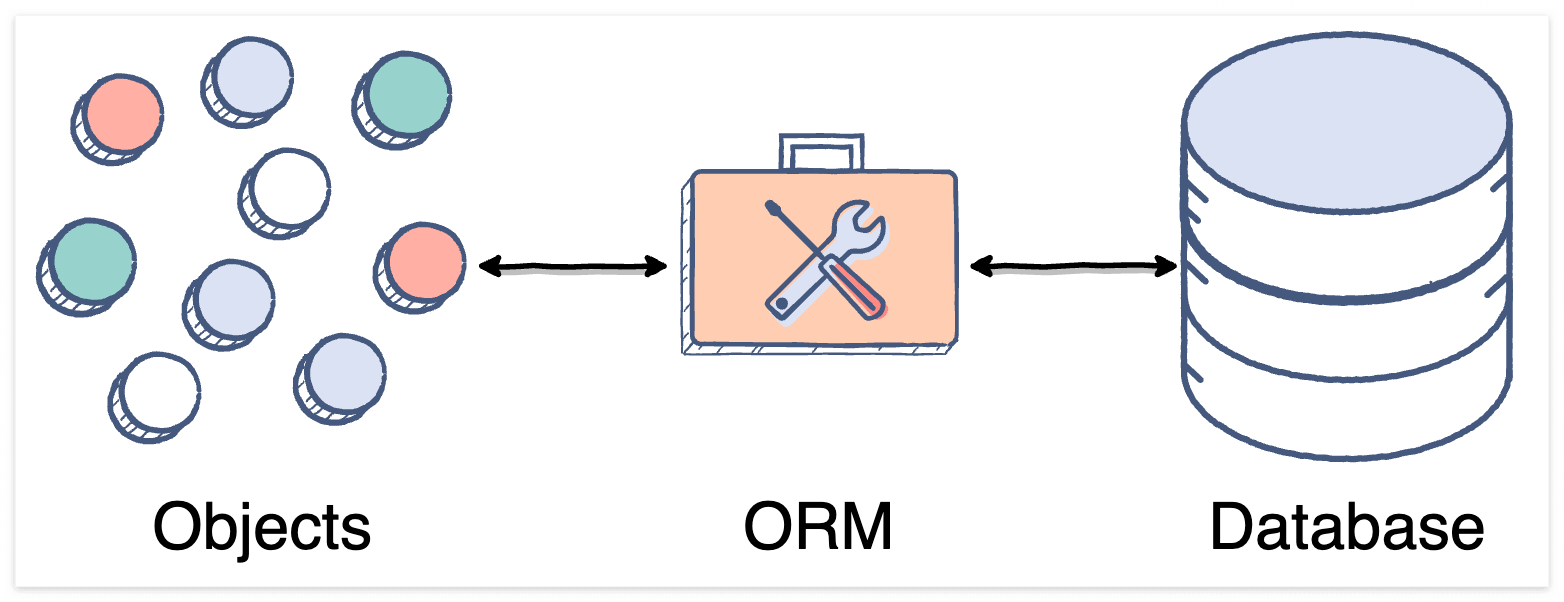 ORM(Object Relational Mapping)은 객체지향프로그램에서의 객체(Objects)와 관계형 데이터베이스의 테이블을 자동으로 매핑하는 기술이다. 이를 이용하여 개발자는 DB에 대한 쿼리문이 아닌 자바 코드(메서드)로 DB의 데이터를 조작할 수 있다.
